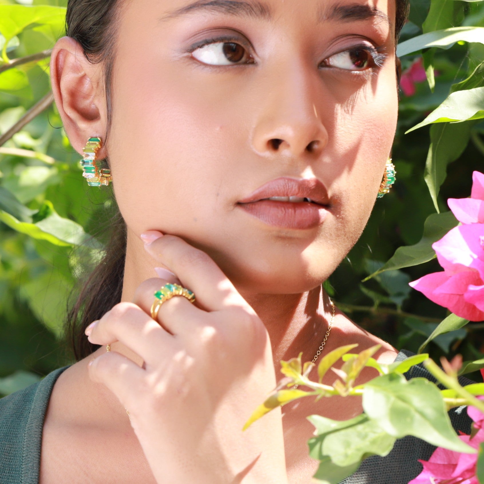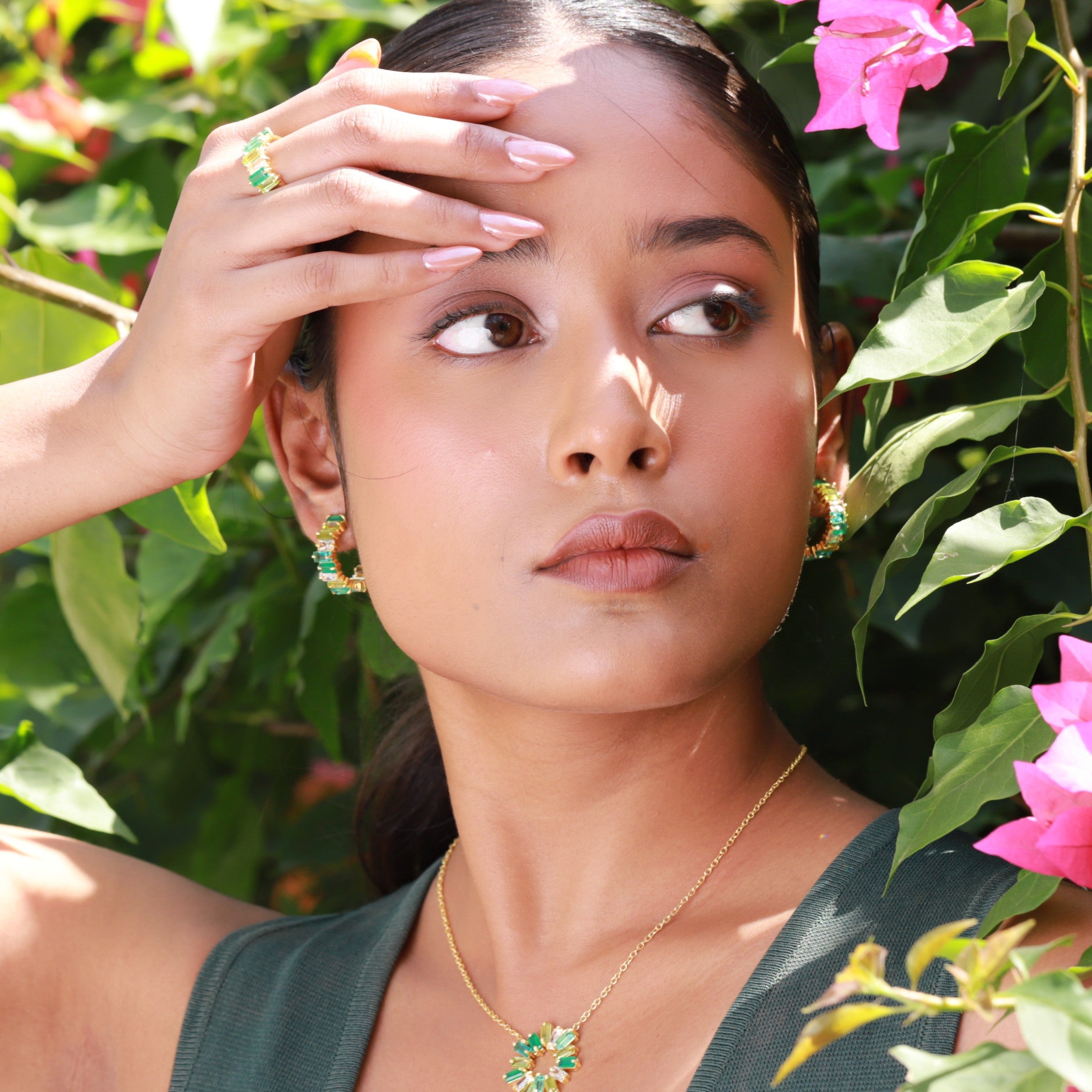 Contemporary, colourful and designed to be worn every day - the Kiara trio of ring, earrings and pendant, brings a sophisticated splash of gorgeous green to your jewellery collection.