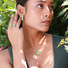 Our pieces are handmade in Jaipur, a city where jewellery is not just worn, but revered. Working closely with a small team of skilled artisans, we honour both heritage techniques and modern forms. Every detail is considered. Every gemstone placed with care. The result: jewellery that holds emotion, energy and elegance.