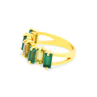 A striking parade of eight baguette cut gemstones marches across your finger in an eye-catching zig-zag pattern that's anything but ordinary.