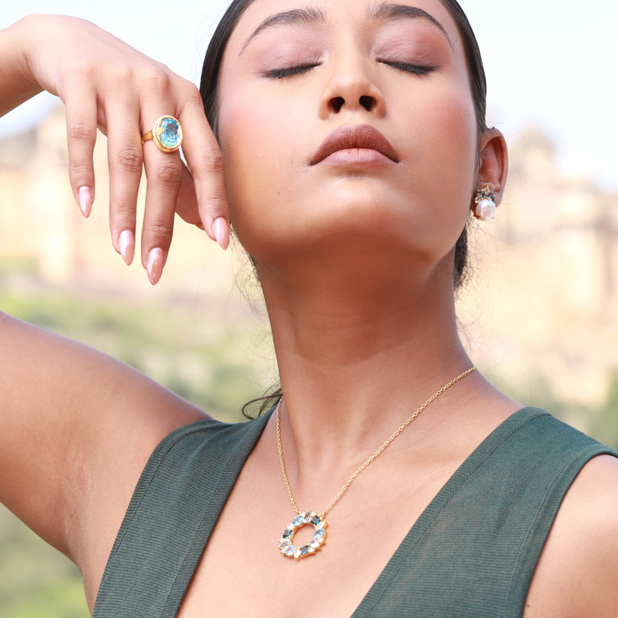 Our pieces are handmade in Jaipur, a city where jewellery is not just worn, but revered. Working closely with a small team of skilled artisans, we honour both heritage techniques and modern forms. Every detail is considered. Every gemstone placed with care. The result: jewellery that holds emotion, energy and elegance.