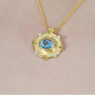 Wearing your blue topaz pendant will help you to relax and bring harmony and sweetness to your relationships. The scorpion’s tail is symbolically depicted in this pendant by the squared off sections of gold surrounding the large, faceted blue topaz stone. The inverted triangle is an ancient Celtic symbol of water, and Scorpio is a water sign, hence the four triangles around the rim of your pendant.