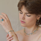 Our pieces are handmade in Jaipur, a city where jewellery is not just worn, but revered. Working closely with a small team of skilled artisans, we honour both heritage techniques and modern forms. Every detail is considered. Every gemstone placed with care. The result: jewellery that holds emotion, energy and elegance.