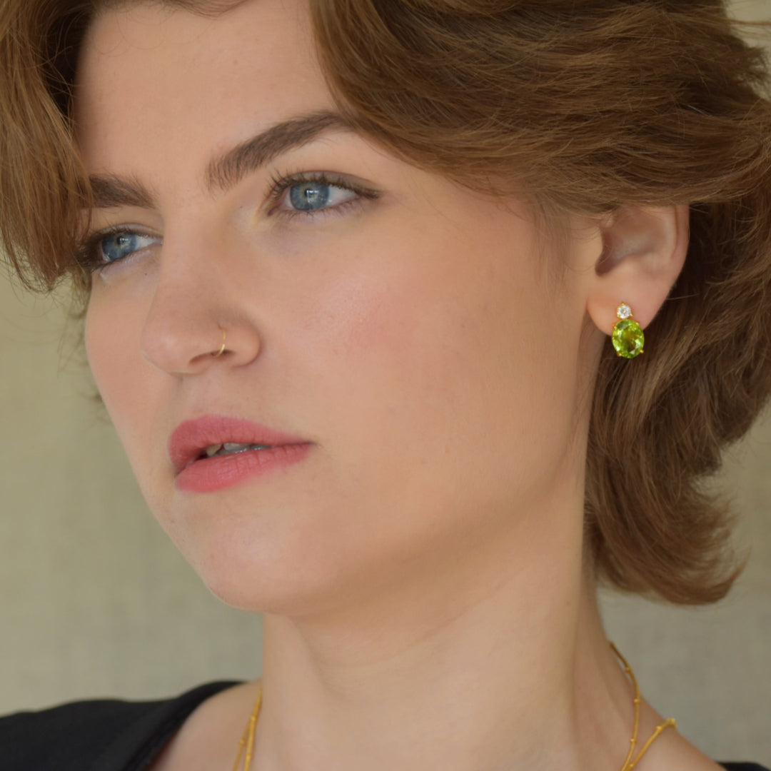 These earrings have been a runaway hit, selling out multiple times in different gemstone variations. Now, for the first time, they’re available in peridot.