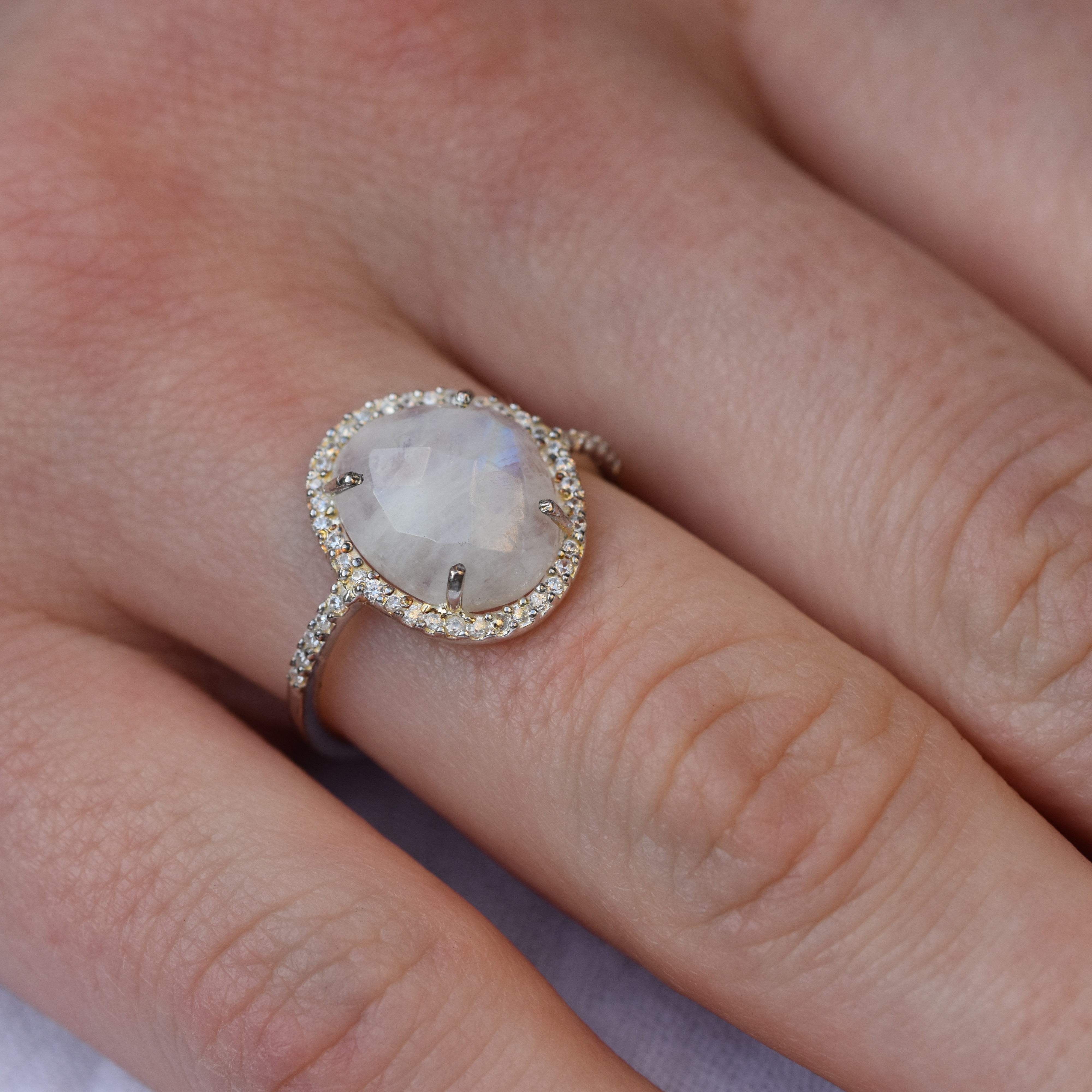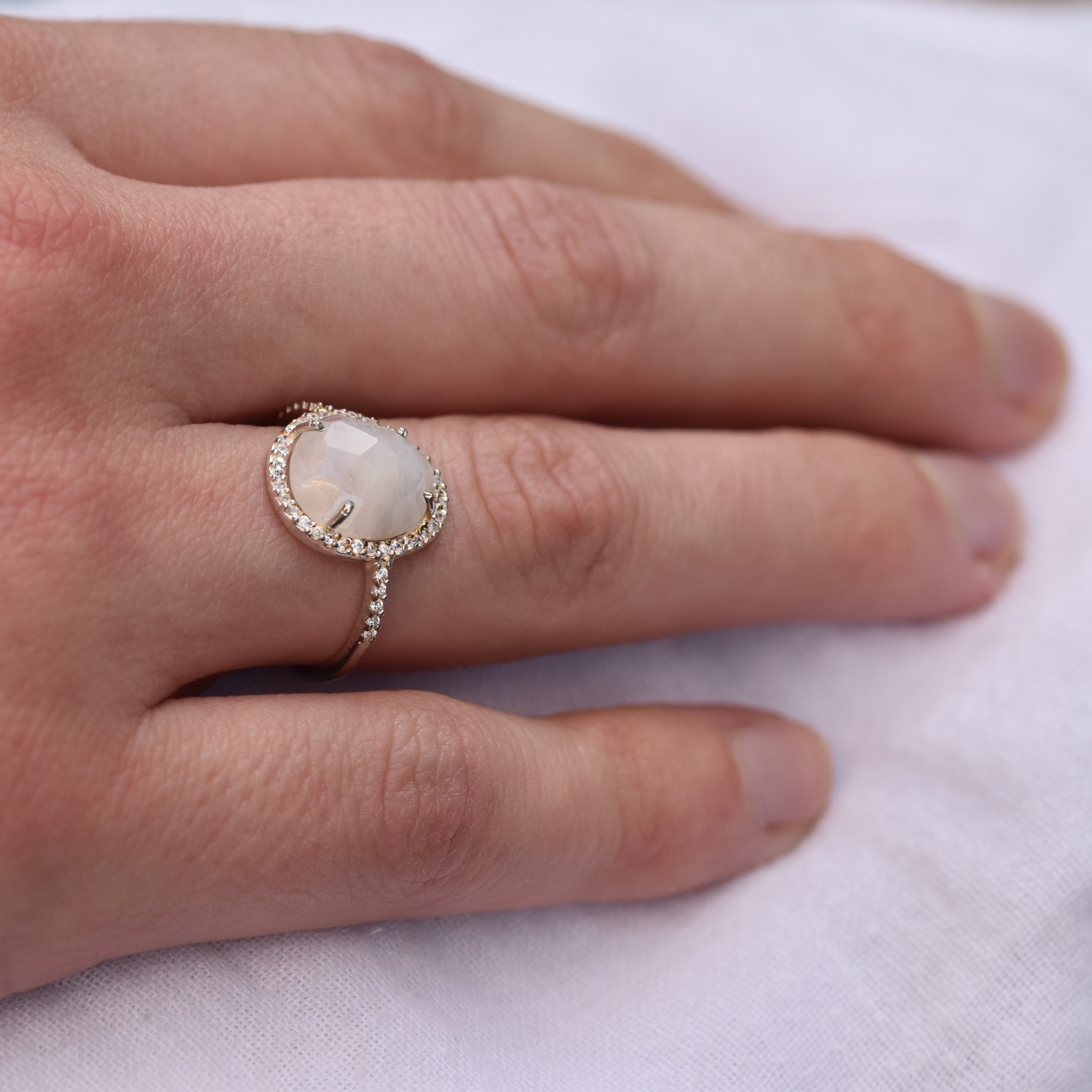 Rainbow moonstone is the gemstone of hope. It helps to clear trauma, and encourages emotional well being and optimism. It is an illuminating and peaceful stone with a deep connection to the divine feminine.