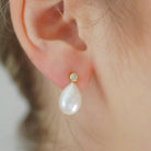 Each earring features a beautiful tear drop-shaped pearl, elegantly suspended below a small cubic zirconia stud, also known as a "poor man's diamond".  They are set in one micron of 18k gilded recycled .925 sterling silver, so the gold will last very well.