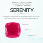 Fuschia chalcedony, like all the chalcedony stones, is linked to the divine feminine.  It brings comfort, protection, helps to relieve worry and fear and instills calm and balance.
