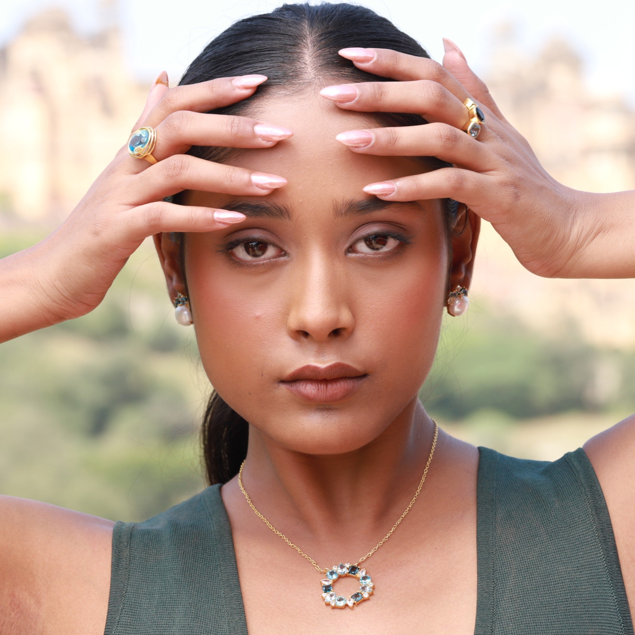 Our pieces are handmade in Jaipur, a city where jewellery is not just worn, but revered. Working closely with a small team of skilled artisans, we honour both heritage techniques and modern forms. Every detail is considered. Every gemstone placed with care. The result: jewellery that holds emotion, energy and elegance.