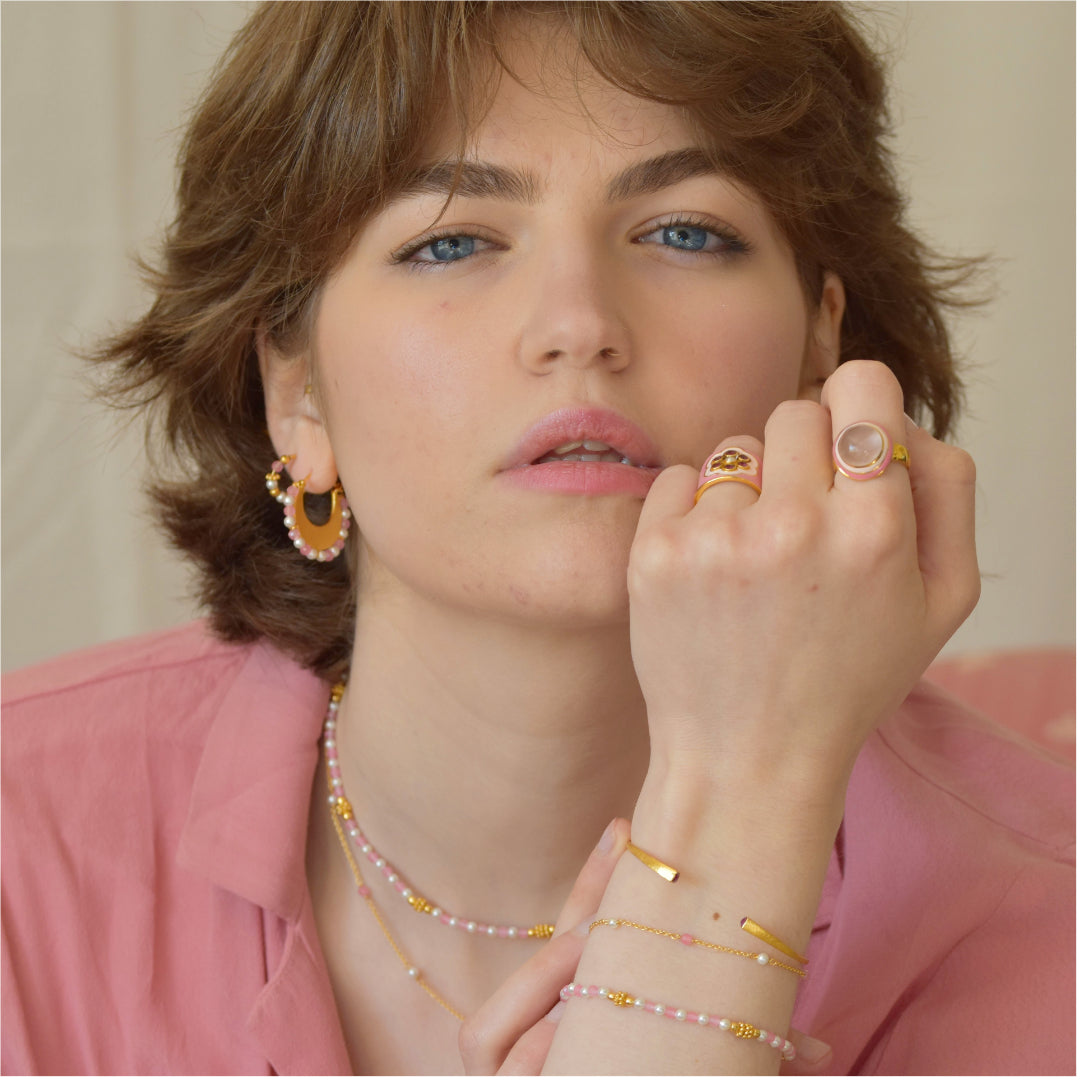 Our pieces are handmade in Jaipur, a city where jewellery is not just worn, but revered. Working closely with a small team of skilled artisans, we honour both heritage techniques and modern forms. Every detail is considered. Every gemstone placed with care. The result: jewellery that holds emotion, energy and elegance.