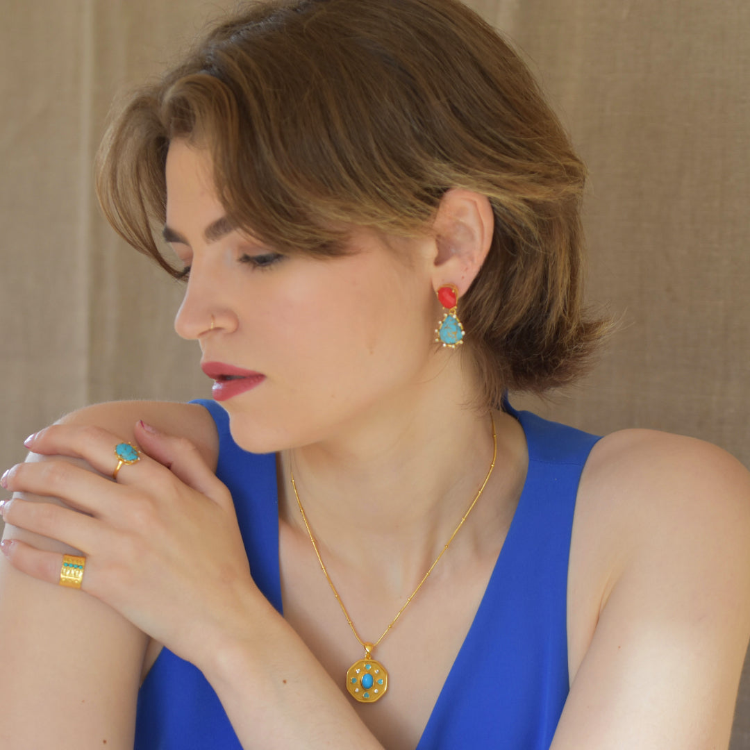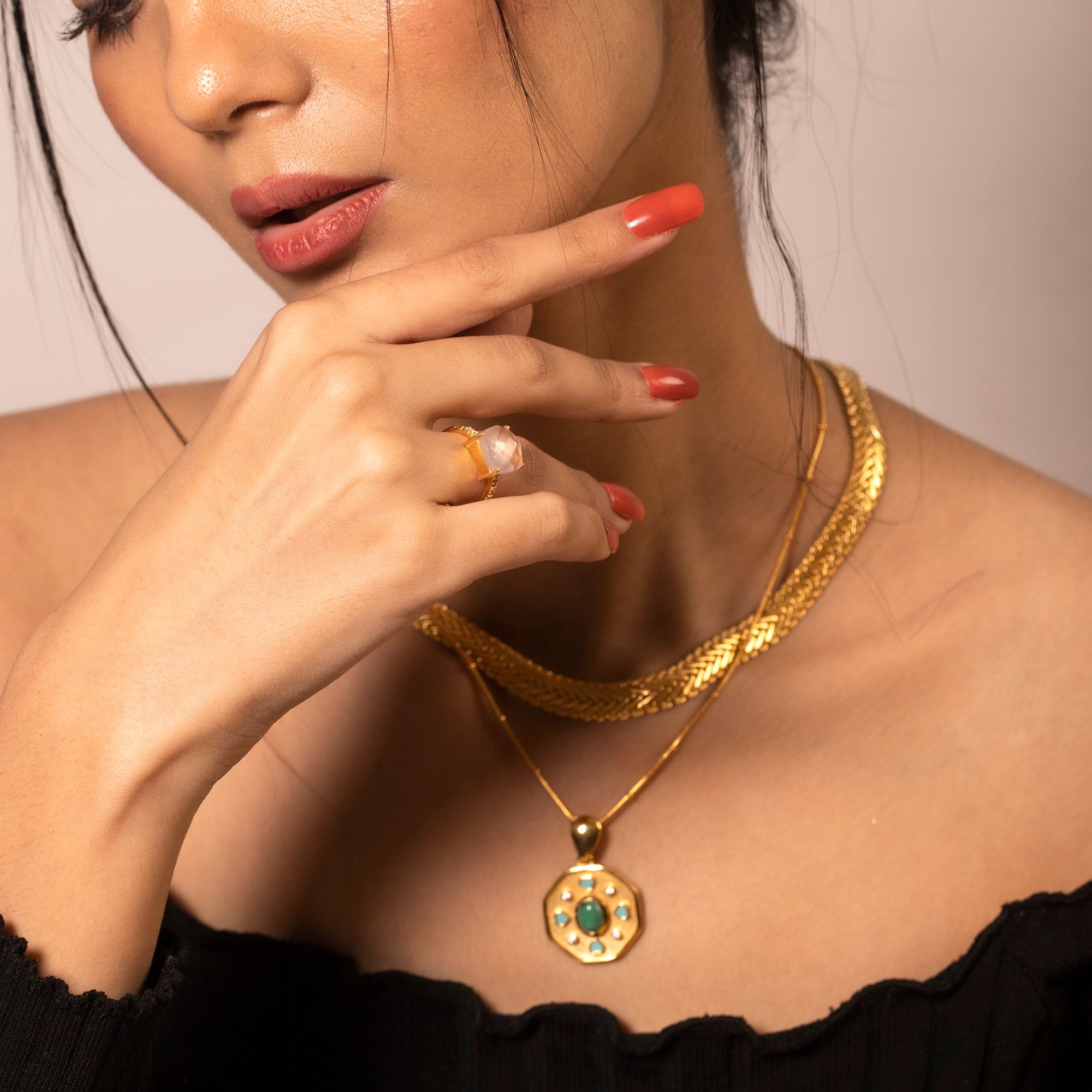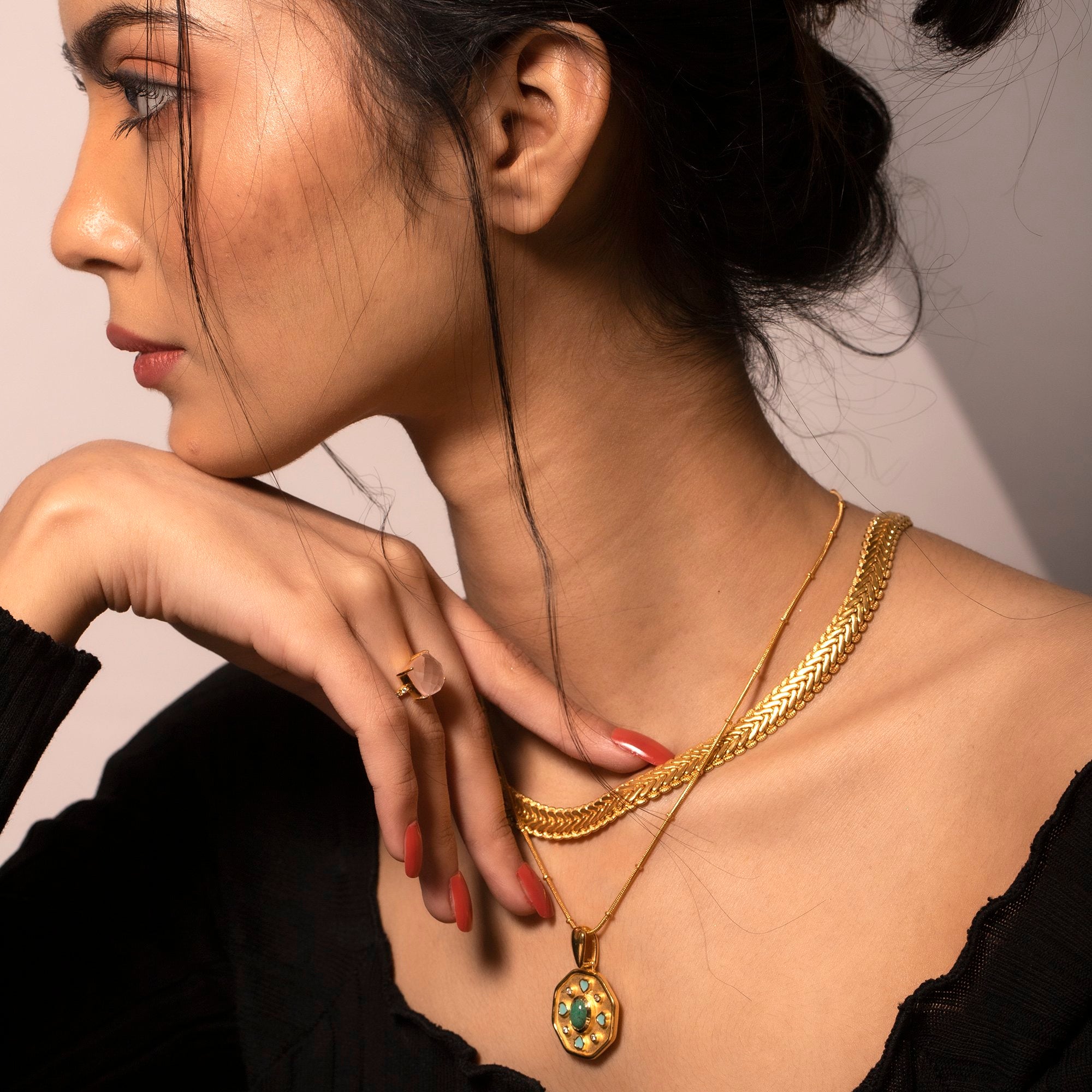 Our pieces are handmade in Jaipur, a city where jewellery is not just worn, but revered. Working closely with a small team of skilled artisans, we honour both heritage techniques and modern forms. Every detail is considered. Every gemstone placed with care. The result: jewellery that holds emotion, energy and elegance.