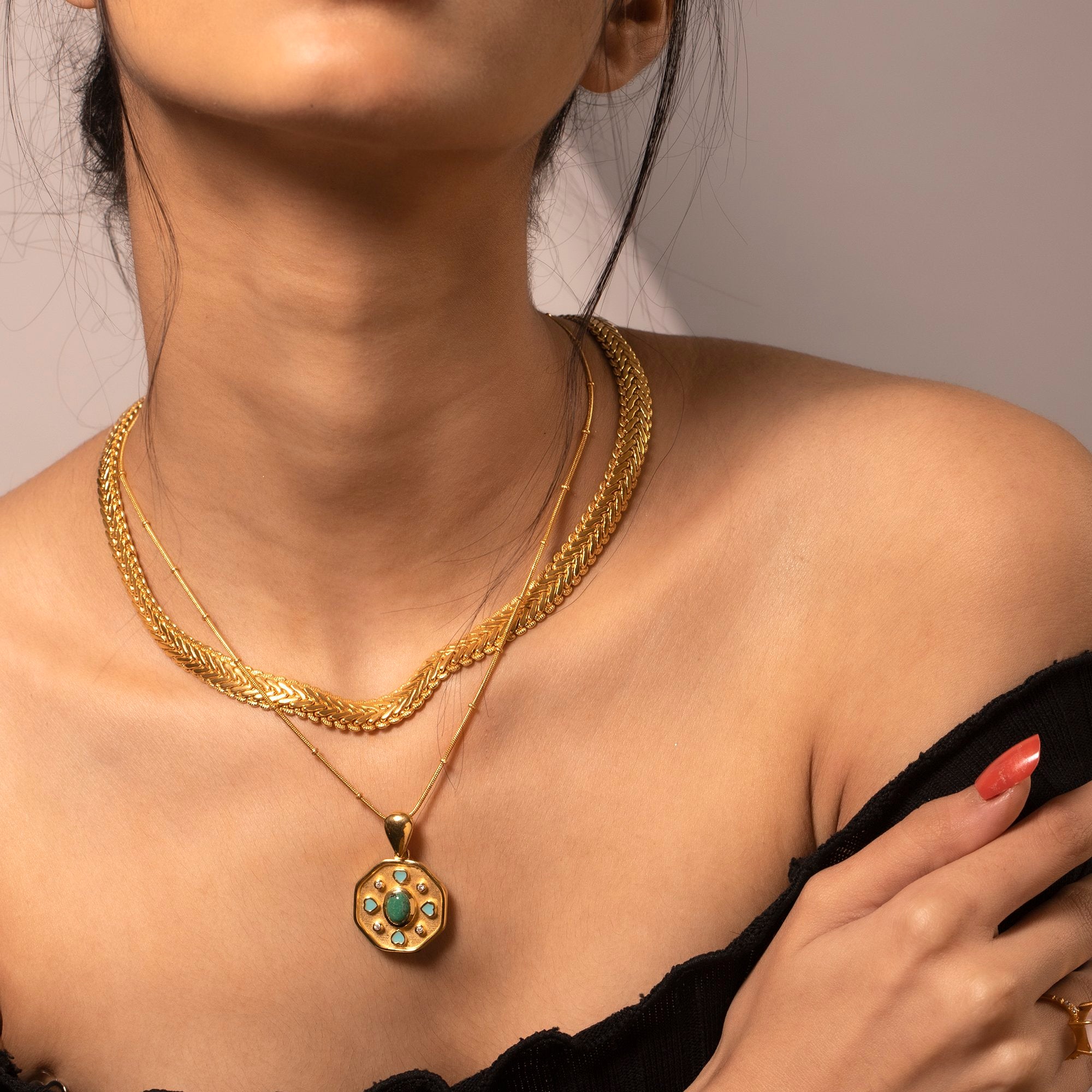 Both pendant and chain are made from recycled brass with one micron of recycled 18k gold vermeil which should last well.