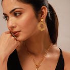 The top circle, post, and butterfly back are crafted from .925 sterling silver and finished with a luxurious one-micron layer of brushed 18k gold, ensuring hypoallergenic comfort for sensitive ears. The cascading discs are made from brass, with a one-micron 18k gold finish, striking the perfect balance between opulence and affordability.  The gold is covered in an e-coating of water resistant lacquer for maximum protection and longevity.