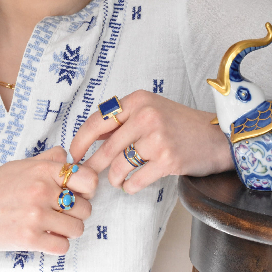 Our pieces are handmade in Jaipur, a city where jewellery is not just worn, but revered. Working closely with a small team of skilled artisans, we honour both heritage techniques and modern forms. Every detail is considered. Every gemstone placed with care. The result: jewellery that holds emotion, energy and elegance.