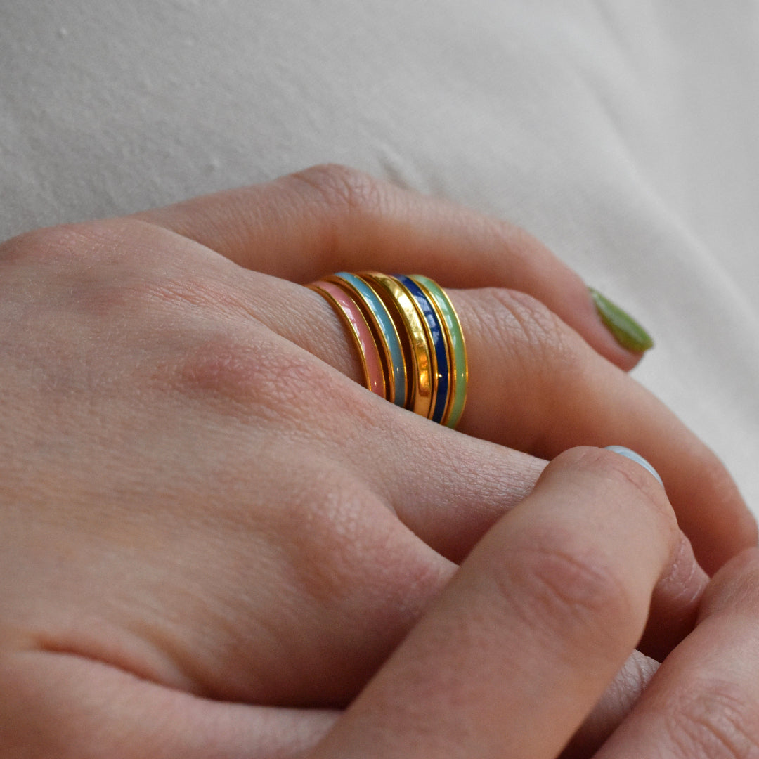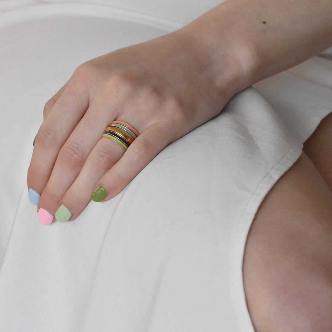 This adorable ring can absolutely be worn on its own or as part of the Tutti Frutti mix and match collection, made up of plain enamel bands, two tone enamel bands and enamel and gemstone bands. It can also be stacked with rings from the Fleury Collection.