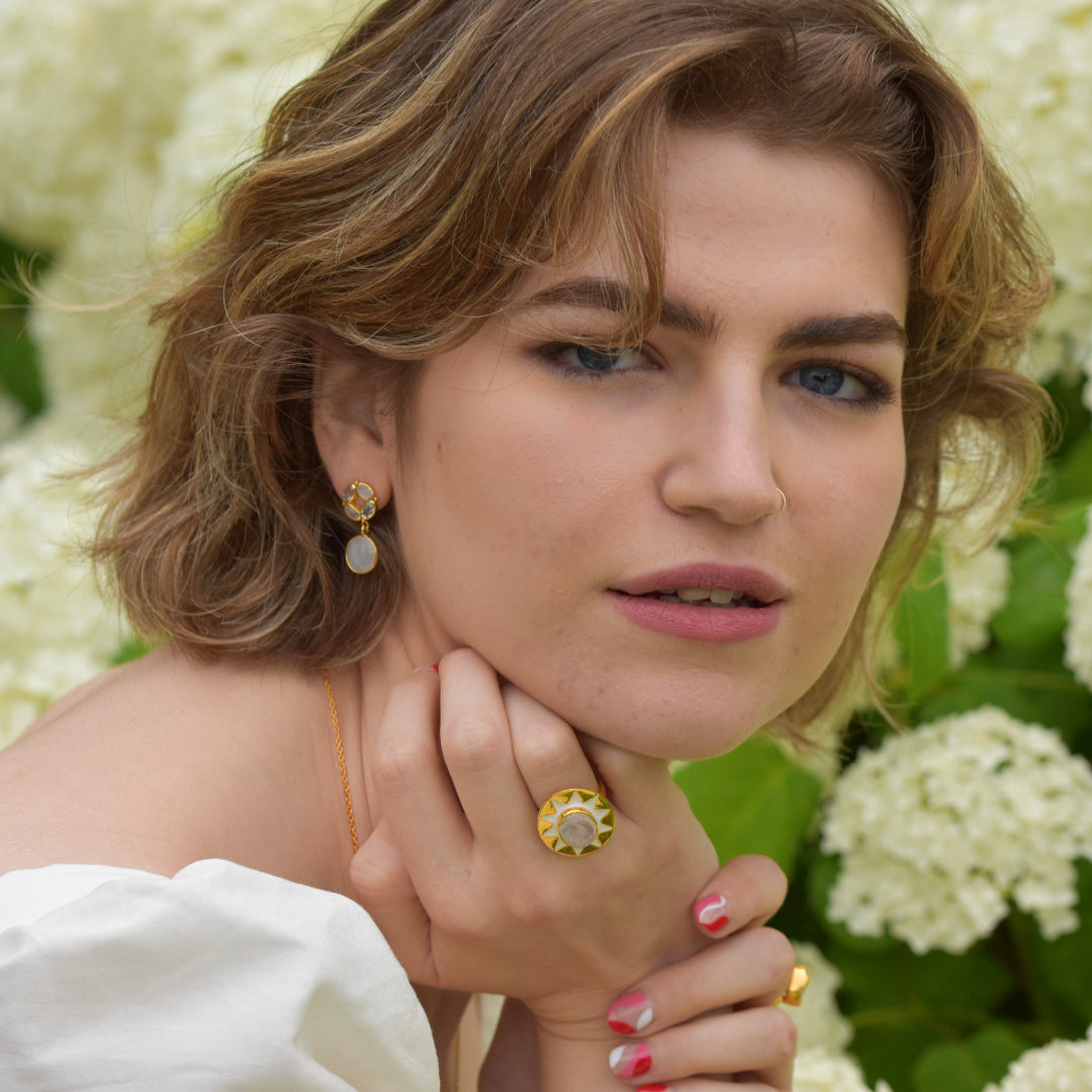 Our pieces are handmade in Jaipur, a city where jewellery is not just worn, but revered. Working closely with a small team of skilled artisans, we honour both heritage techniques and modern forms. Every detail is considered. Every gemstone placed with care. The result: jewellery that holds emotion, energy and elegance.