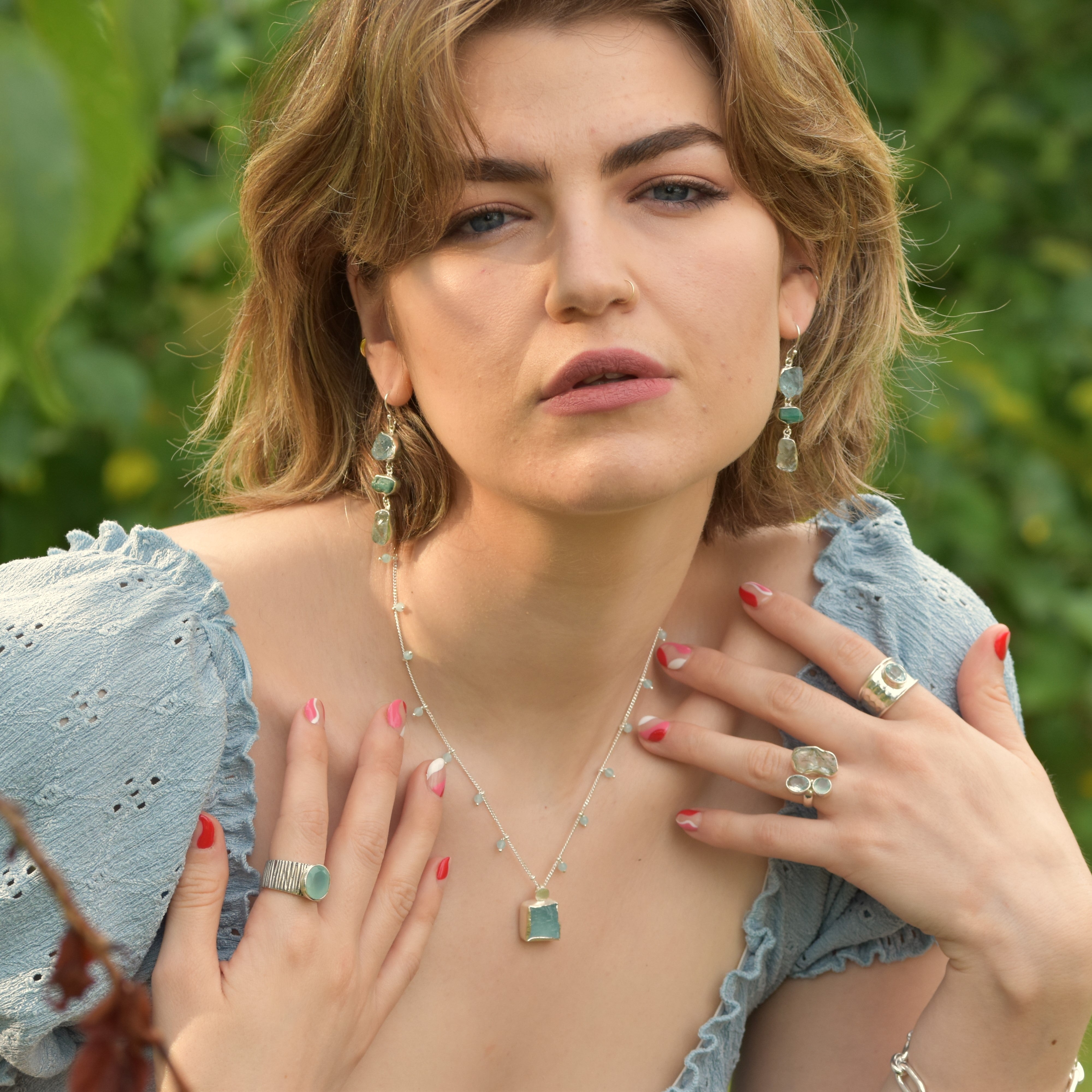 Our pieces are handmade in Jaipur, a city where jewellery is not just worn, but revered. Working closely with a small team of skilled artisans, we honour both heritage techniques and modern forms. Every detail is considered. Every gemstone placed with care. The result: jewellery that holds emotion, energy and elegance.