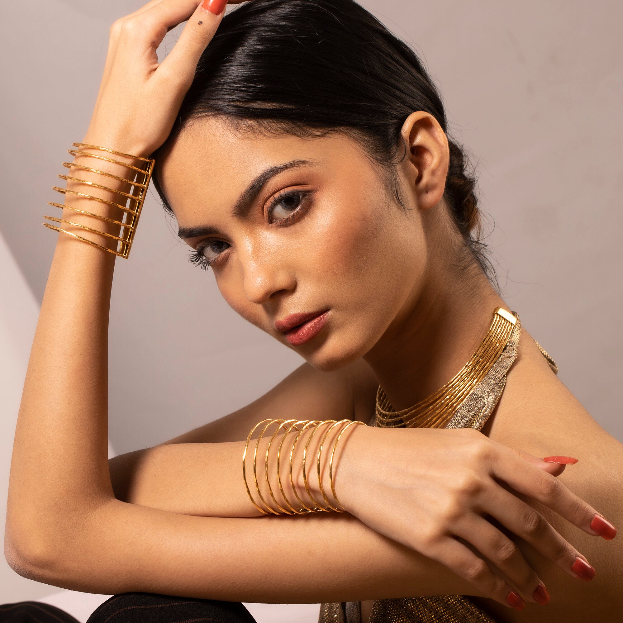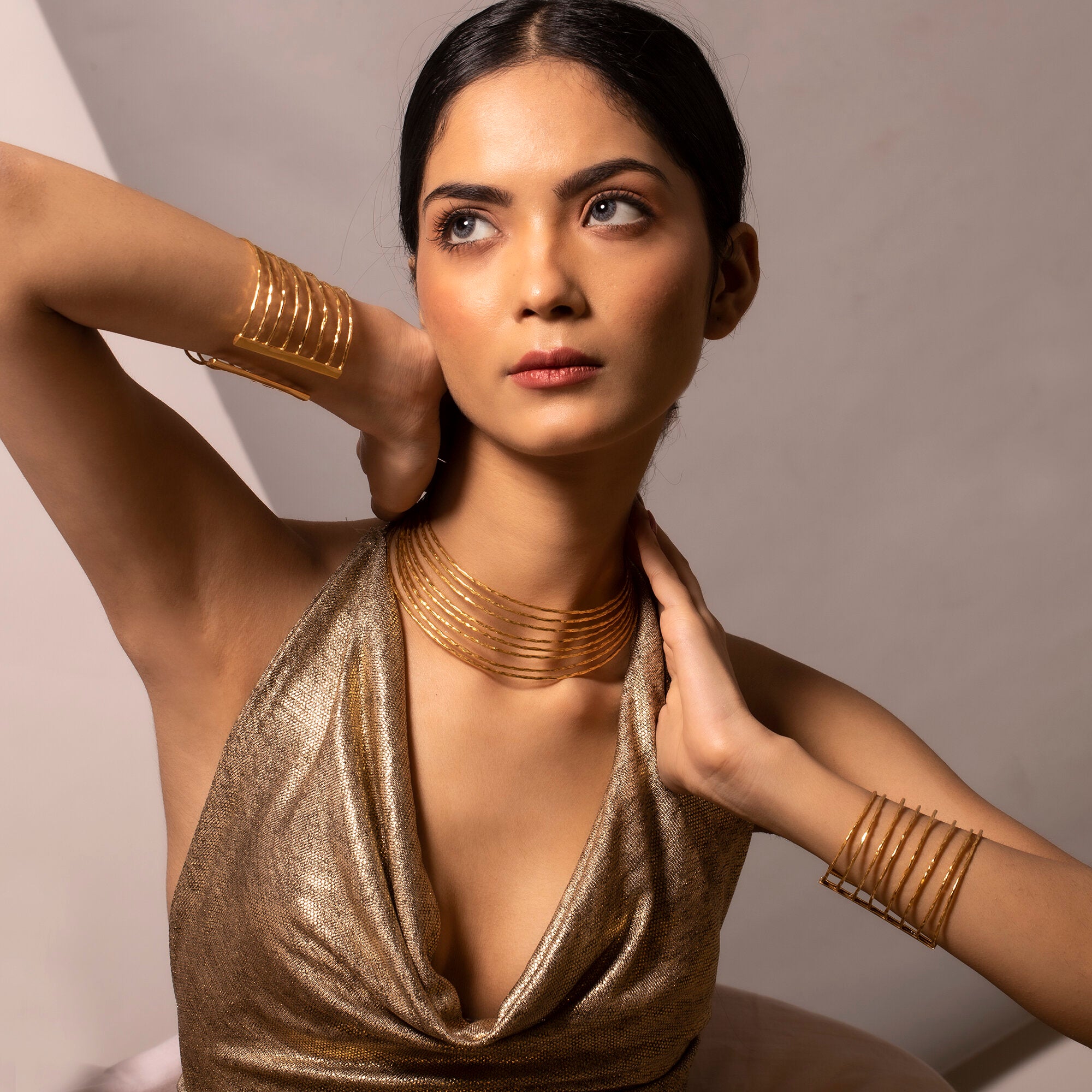 This gold cuff and its matching choker embody the term ‘statement piece’.