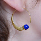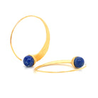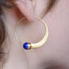 Crafted from recycled 18k brushed, gilded .925 sterling silver, these earrings feature a widening circle with a stunning cabochon lapis lazuli gemstone at one end. Their versatility allows them to be worn both ways, with the lapis facing either outwards or inwards.