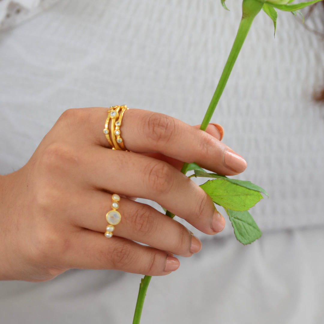 Our pieces are handmade in Jaipur, a city where jewellery is not just worn, but revered. Working closely with a small team of skilled artisans, we honour both heritage techniques and modern forms. Every detail is considered. Every gemstone placed with care. The result: jewellery that holds emotion, energy and elegance.