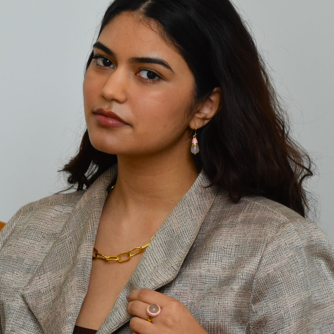 Our pieces are handmade in Jaipur, a city where jewellery is not just worn, but revered. Working closely with a small team of skilled artisans, we honour both heritage techniques and modern forms. Every detail is considered. Every gemstone placed with care. The result: jewellery that holds emotion, energy and elegance.